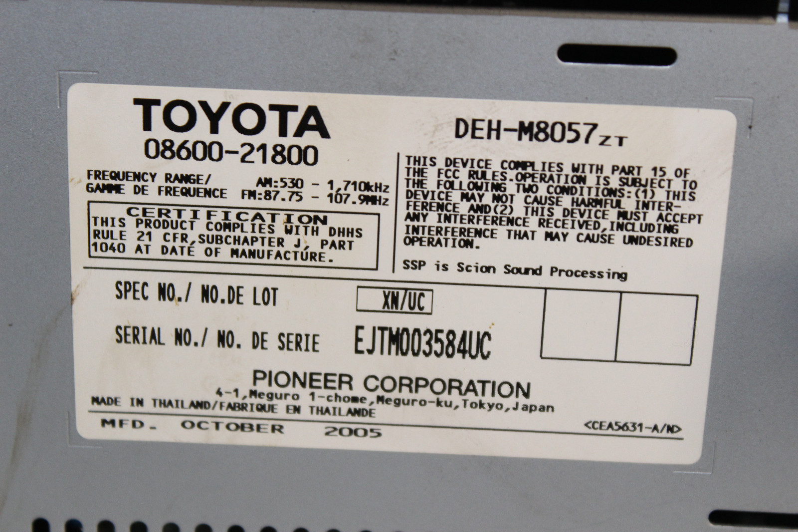 2005-2010 SCION TC 2DR COUPE STEREO AM/FM RADIO CD PLAYER K1863