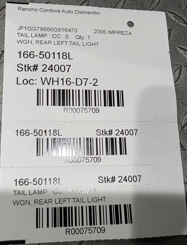 • Driver Left Tail Light Station Wgn Fits 06 IMPREZA 75709 image 1