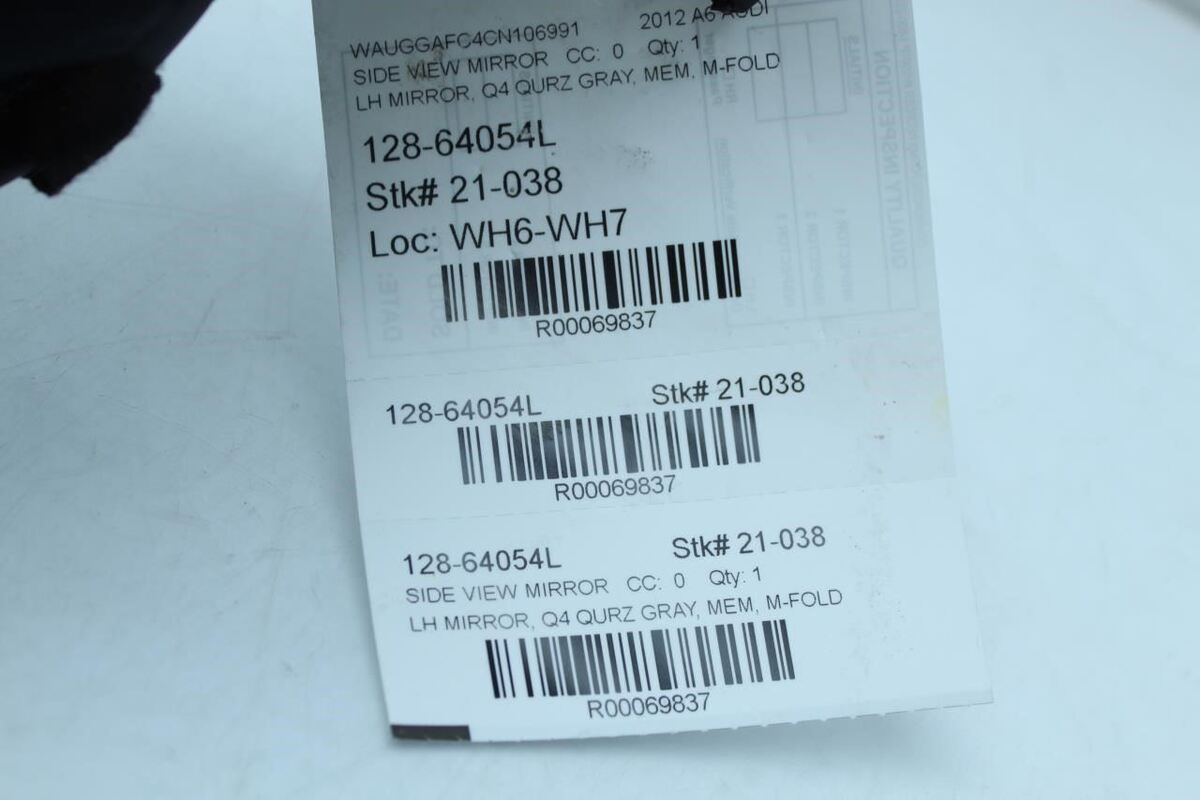 AUDI A6 12-13 Power; w/o blind spot alert; w/o folding; w/memory, w/o camera; L.
