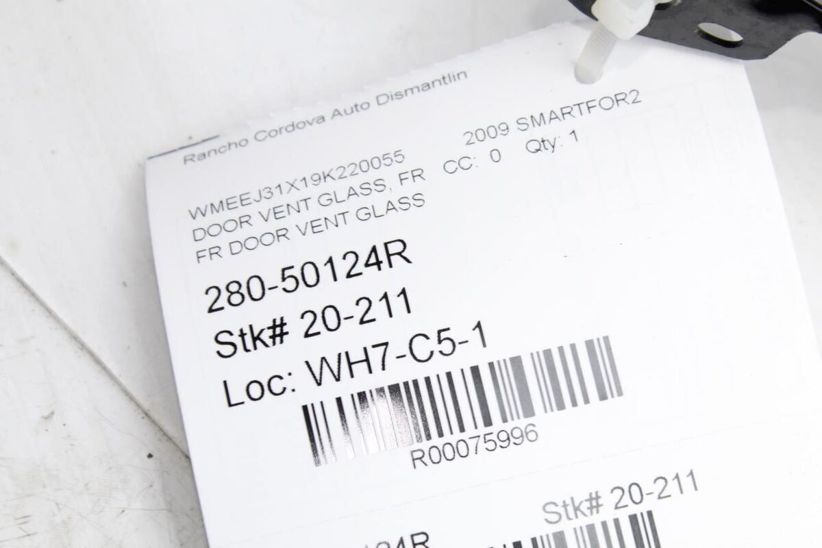 • Right Passenger Side Door Vent Glass Fits 08-15 SMART 75996 image 1