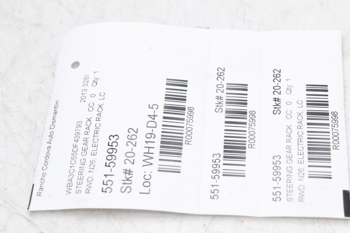 BMW 328i 12 Power Rack and Pinion; Sdn, (electric), w/o variable ratio sport steering; N26 engine